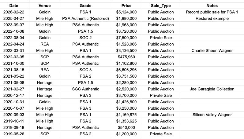 The record for a Wagner sale remains $7.5 Million, which set back in 2022 in a private sale for an SGC 2 Wagner.